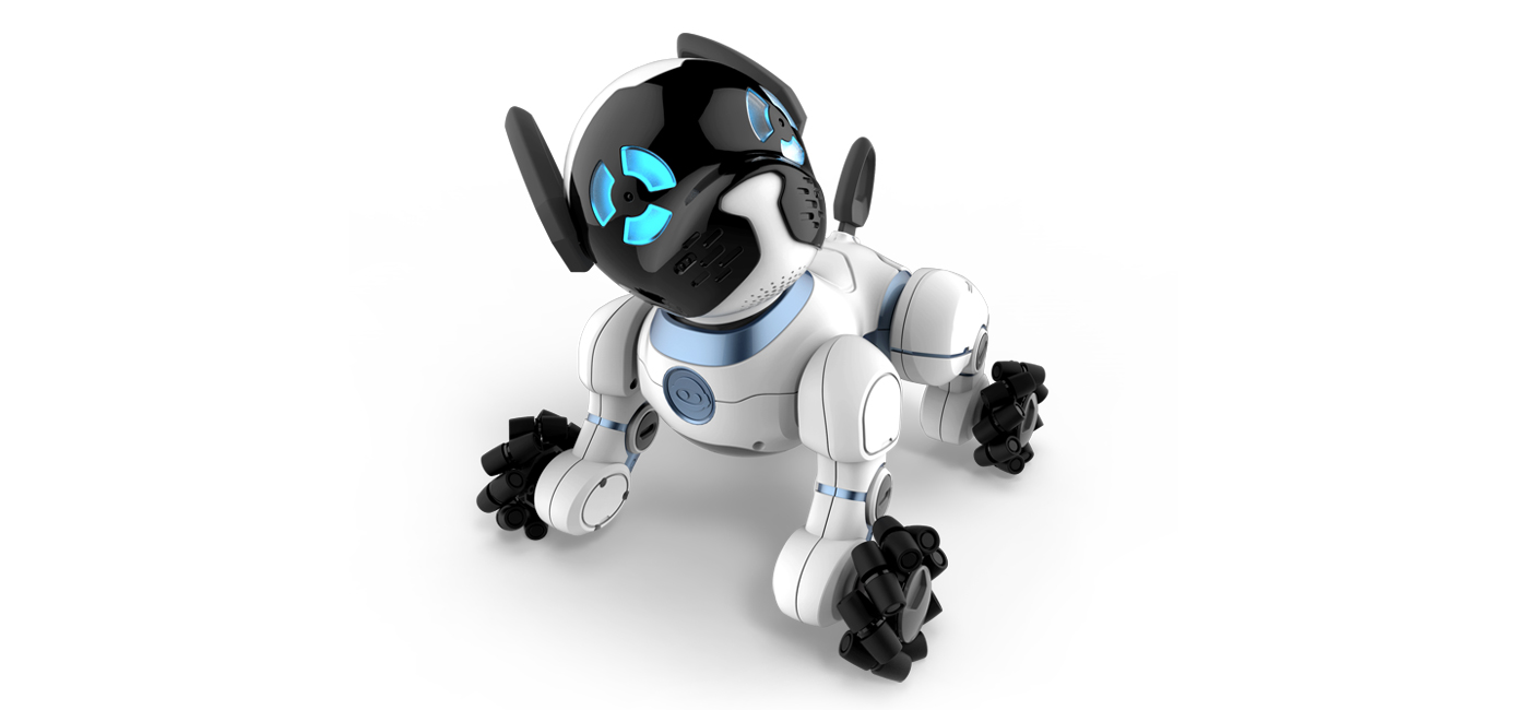 CHiP shows off for CNBC's live television report from WowWee's booth at New York's Toy Fair. Two adorable robotic dogs dance around eachother on stage, while reporter Morgan Brennan highlights some of CHiP's key features. Brennan also touches on security concerns as toys get more technical.
